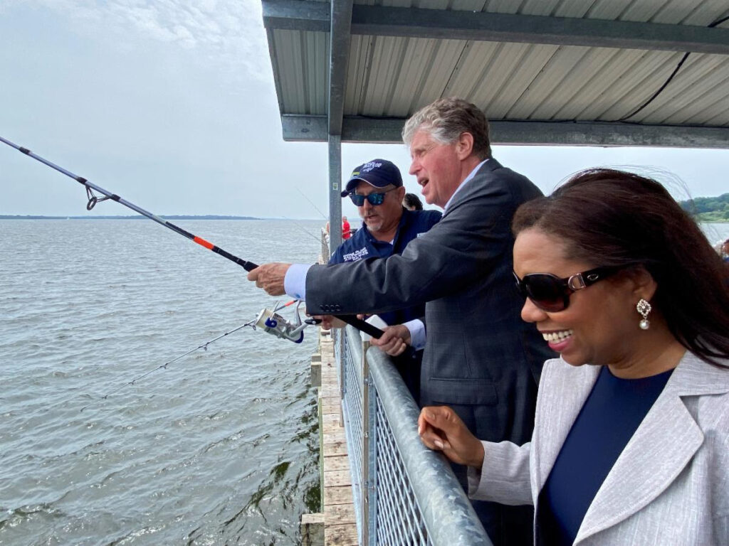 Líderes legislativos y locales, funcionarios de agencias estatales, la Asociación de Pescadores de Agua Salada de Rhode Island y pescadores recreativos se unieron al Gobernador en una ceremonia de firma en el Parque Estatal Rocky Point en Warwick, y luego lanzaron sus líneas desde el muelle Larry Mouradjian, para enfatizar el otro gran regalo de Bay Day: pesca gratuita en agua salada desde el viernes 28 de julio hasta el domingo. 30 de julio.