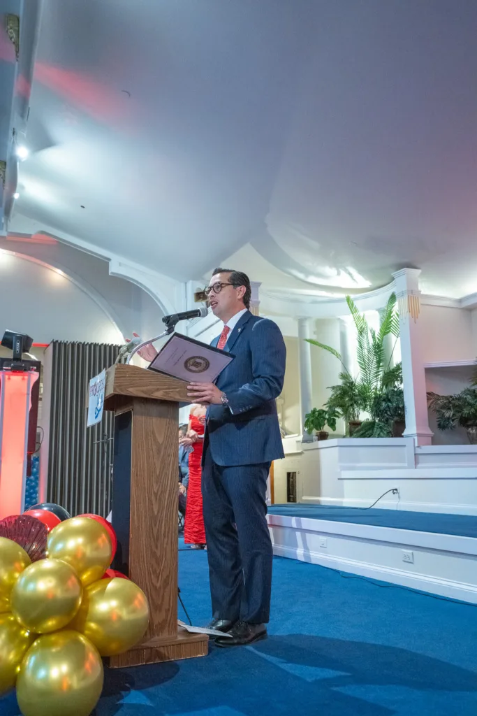 En la entrega de reconocimientos a las siguientes organizaciones en diversos campos de servicio a la comunidad, a saber: Teatro Ecas, categoría Cultural Heritage & Arts;  Latino Policy Institute, Policy Champion Award; Fuerza Laboral, Community Power & Labor Rights Award; Francis Cimerol, Education for Empowerment Award.