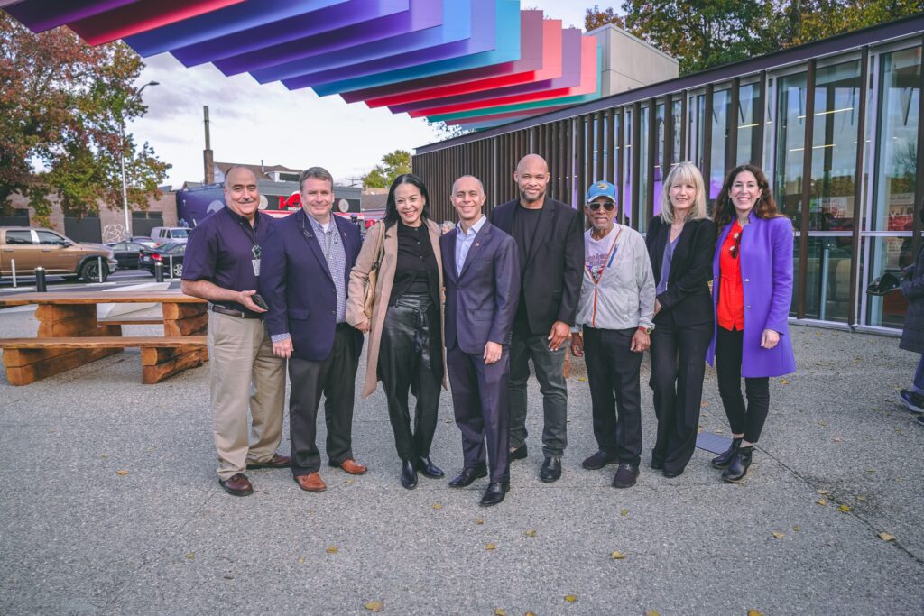 PROVIDENCE, RI – Alcalde Jorge O. Elorza, Senador de los EE. UU. Sheldon Whitehouse, Representante de los EE. UU. David Cicilline, miembros del Concejo Municipal de Providence, Bonnie Nickerson, Directora Ejecutiva de la Agencia de Reurbanización de Providence, Wendy Nilsson, Superintendente del Departamento de Parques de Providence, James Comer, Director Adjunto de RI Housing y Marta V. Martinez, directora ejecutiva de Rhode Island Latino Arts (RILA) dieron a conocer el nuevo Roger Williams Park Gateway Center, un proyecto que transformó un terreno baldío y arruinado en Broad Street en una puerta de entrada para el parque y el espacio para eventos para la comunidad y los barrios aledaños.
